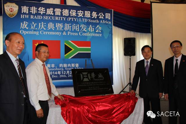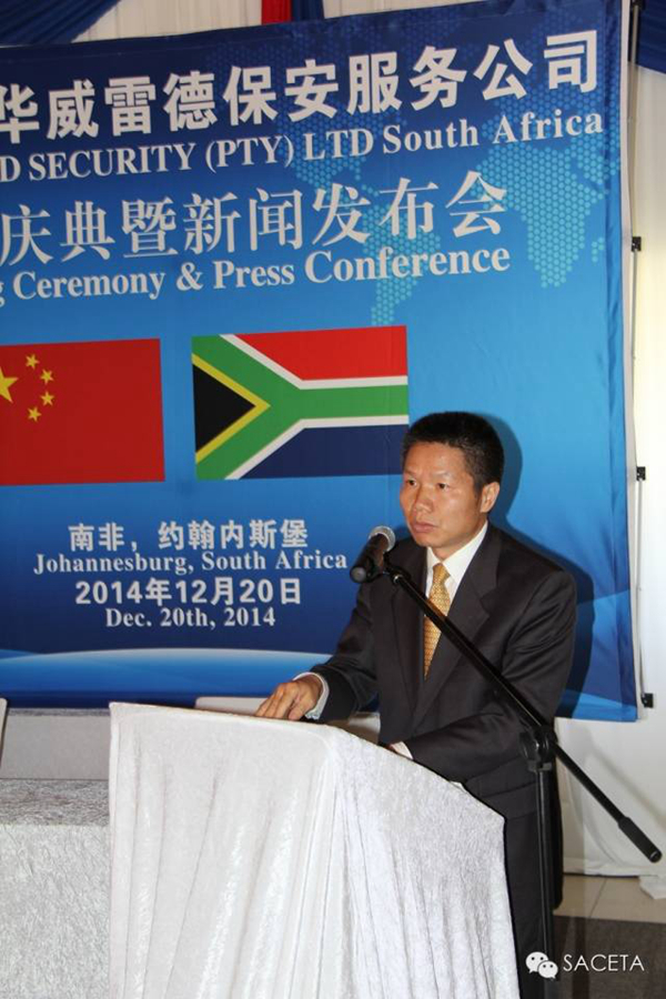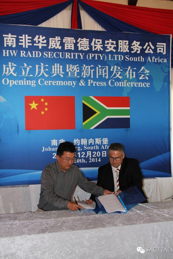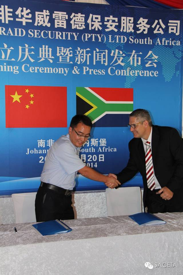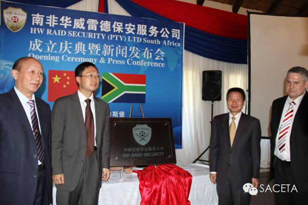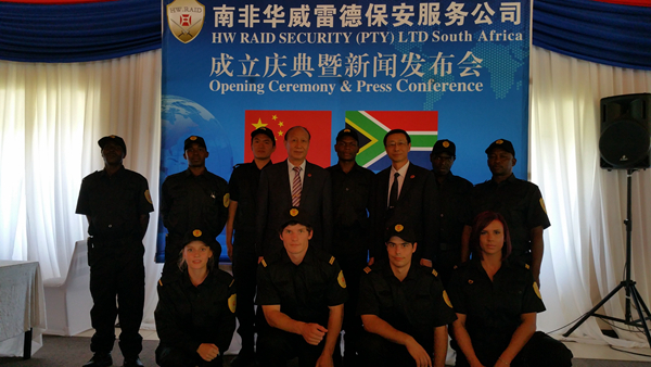 20日上午,華威雷德公司在約翰內(nèi)斯堡Birchwood 飯店舉行了成立慶典暨新聞發(fā)布會,中國駐南非大使館經(jīng)濟(jì)商務(wù)參贊榮延松、警務(wù)參贊王志鋼、中國駐南非約翰內(nèi)斯堡總領(lǐng)館副總領(lǐng)事楊培棟、南非-中國經(jīng)貿(mào)協(xié)會秘書長衛(wèi)中以及中資企業(yè)等各界人士70多位嘉賓應(yīng)邀參加了慶典活動?;顒佑扇A威保安集團(tuán)高級顧問蔣曉明主持,山東華威保安集團(tuán)董事長、華威雷德公司董事長荀金慶致詞,對各位嘉賓的到來表示熱烈的歡迎和衷心的感謝。華威雷德公司總經(jīng)理弗朗斯介紹了公司概況及今后開展經(jīng)營業(yè)務(wù)的計劃。經(jīng)濟(jì)商務(wù)參贊榮延松、南非經(jīng)貿(mào)協(xié)會秘書長衛(wèi)中等領(lǐng)導(dǎo)分別致詞,對華威雷德公司的成立表示熱烈的祝賀。與會領(lǐng)導(dǎo)為華威雷德公司及山東華威集團(tuán)駐南非代表處揭牌。隨后,中國五礦、中國證大、山東新光集團(tuán)分別與華威雷德公司簽訂了合作意向書。近年來,華威保安集團(tuán)一直致力于開拓國際保安市場,探討中國保安公司如何走出國門為中國海外企業(yè)及公民提供安全保護(hù)的途徑。華威雷德保安公司的成立,標(biāo)志著中國保安企業(yè)為實現(xiàn)上述目標(biāo)邁出了可喜的第一步。