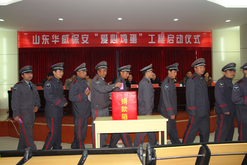 為了向生活在貧困線以下的兒童奉獻(xiàn)一片愛(ài)心,讓貧困家庭的孩子們每天能吃上一個(gè)雞蛋,公司號(hào)召全體員工,通過(guò)啟動(dòng)捐獻(xiàn)“愛(ài)心雞蛋”工程,以實(shí)際行動(dòng)讓貧困兒童真切地感受到華威保安仁義博愛(ài)的情懷,為加強(qiáng)對(duì)華威保安“愛(ài)心雞蛋”工程的管理,公司還決定成立華威保安“愛(ài)心雞蛋”工程管理委員會(huì),董事長(zhǎng)、總裁荀金慶任會(huì)長(zhǎng),首席經(jīng)濟(jì)顧問(wèn)、我國(guó)著名經(jīng)濟(jì)學(xué)