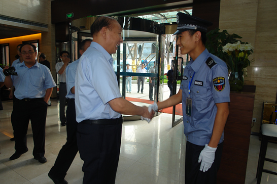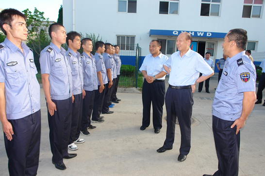 會(huì)后,與會(huì)人員先后到青島分公司駐青島卷煙廠、青島卷煙廠南渠煙庫(kù)、遠(yuǎn)洋地產(chǎn)、中鐵置業(yè)有限公司等執(zhí)勤點(diǎn)看望慰問(wèn)了執(zhí)勤保安員。董事長(zhǎng)、總裁荀金慶每到一處,都與隊(duì)員親切握手,詳細(xì)了解家庭情況,囑咐負(fù)責(zé)人一定要做好隊(duì)員的生活保障,讓大家安心工作,并鼓勵(lì)大家要繼續(xù)發(fā)揚(yáng)華威保安的優(yōu)良傳統(tǒng),扎實(shí)工作,樹立起華威保安的品牌形象。