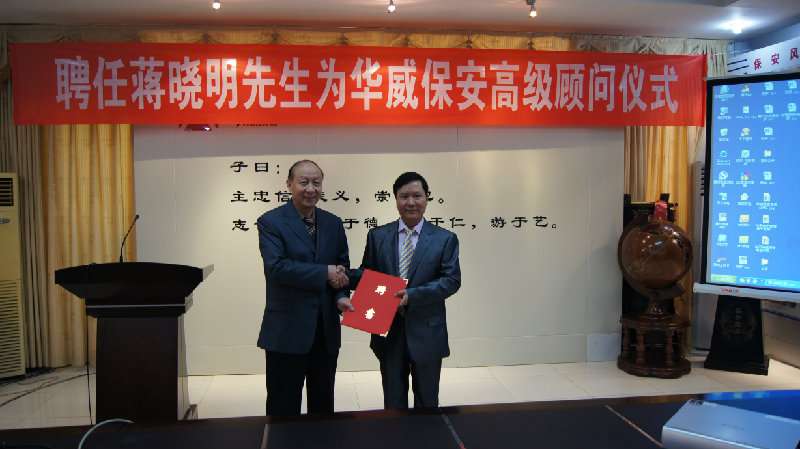 為做大做強華威保安,加快企業(yè)跨越式發(fā)展,集團公司聘請國際保安界知名專家蔣曉明先生為華威保安高級顧問。12月9日上午,在集團公司三樓多功能廳隆重舉行了聘任儀式。集團公司董事會、監(jiān)事會成員及公司中高層領(lǐng)導(dǎo)出席,黨總支副書記米永友主持了儀式,常務(wù)副總裁楊中河宣讀了集團公司聘任決定,并介紹蔣曉明先生的簡歷。隨后,董事長、總裁荀金慶向蔣曉明先生頒發(fā)了聘書,并作了重要講話。