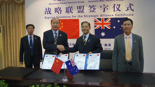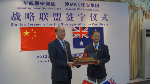 6月17日,山東華威保安集團與澳大利亞MSS保安集團正式簽署戰(zhàn)略聯(lián)盟合作協(xié)議,分享跨國公司服務(wù)標(biāo)準(zhǔn),聯(lián)手開發(fā)海外安保服務(wù)市場,這是我國保安首次與國外保安同行進行戰(zhàn)略合作,此舉對于加快華威保安的跨越發(fā)展將產(chǎn)生深遠的影響。山東華威保安集團董事長、總裁荀金慶、澳大利亞MSS保安集團總裁陳喬治分別在協(xié)議上簽字。曲阜市副市長劉秀廣、曲阜市公安局局長榮民等領(lǐng)導(dǎo)出席了簽字儀式。
