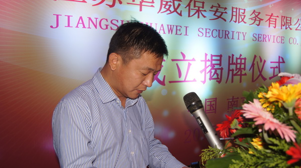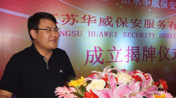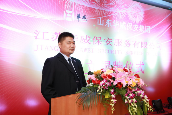 山東華威保安集團(tuán)董事長(zhǎng)、總裁荀金慶致辭,向多年來(lái)關(guān)心支持集團(tuán)公司發(fā)展的各級(jí)領(lǐng)導(dǎo)和社會(huì)各屆人士表示衷心感謝。簡(jiǎn)要介紹了公司的發(fā)展歷程,并對(duì)下步工作提出了希望和要求。他表示:“集團(tuán)公司在南京成立江蘇華威公司,是為了更好的開(kāi)發(fā)江蘇地區(qū)安保業(yè)務(wù),滿足長(zhǎng)三角地區(qū)新市場(chǎng)的需求,是深入貫徹集團(tuán)“高端發(fā)展、轉(zhuǎn)型升級(jí)”及“走出去”戰(zhàn)略的又一有力舉措,江蘇公司的成立代表著華威進(jìn)軍華東市場(chǎng)道路上又邁出了一大步。成立后的江蘇公司將借助長(zhǎng)三角經(jīng)濟(jì)帶這一新環(huán)境,采取更加符合開(kāi)展地域特點(diǎn)的人事、用工、分配、管理新機(jī)制,形成更加有利于公司業(yè)務(wù)開(kāi)拓的內(nèi)部環(huán)境和運(yùn)營(yíng)機(jī)制,依法經(jīng)營(yíng)、誠(chéng)信經(jīng)營(yíng),為客戶提供更加專業(yè)、高效的安保服務(wù),打響來(lái)至齊魯大地、東方圣城的華威保安品牌。”