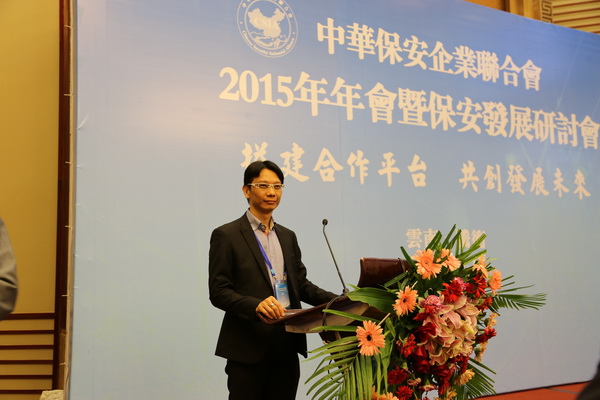 2015年10月17日,中華保安企業(yè)聯(lián)合會2015年年會暨保安發(fā)展研討會在云南騰沖市召開。聯(lián)合會顧問、全球安防聯(lián)盟主席理查德.切斯,聯(lián)合會顧問、新加坡JK咨詢控股公司董事長郭志豪先生應(yīng)邀出席了大會。近50家會員單位的70余名代表參加了大會。
