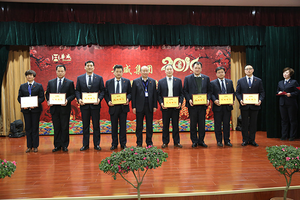 當天的表彰大會中,共頒發(fā)了集團2015年度先進集體、先進管理者、服務明星、基層企業(yè)文化先進個人、先進黨支部、團支部、優(yōu)秀黨員、優(yōu)秀團員等十多個獎項,荀董事長、常務副總裁楊中河、黨總支副書記李曉虎,集團副總裁顏承國、孫勇、姚彥偉,工會主席孫凡華分別為獲獎集體和個人頒獎,并合影留念。