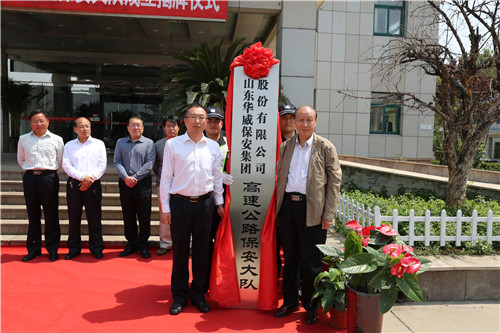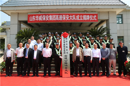 揭牌儀式上,泰安服務(wù)區(qū)李總、集團荀董事長共同為華威保安集團高速公路保安大隊成立揭牌。