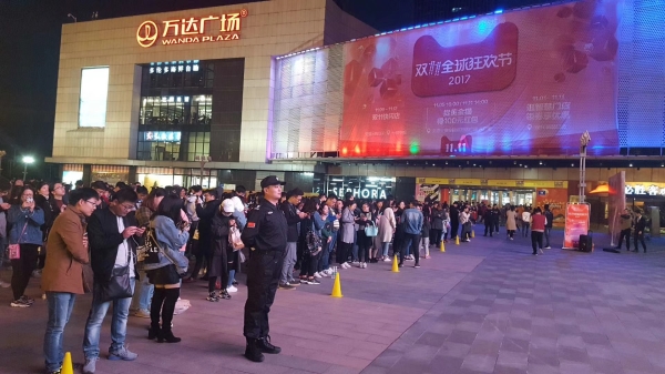 雙11期間天貓科技公司舉辦的“捉黃金貓,領(lǐng)現(xiàn)金紅包”活動(dòng)在建鄴萬(wàn)達(dá)廣場(chǎng)如期舉辦,活動(dòng)共吸引了5000余人參加。此次活動(dòng)全程由江蘇華威保安公司派出的特保保駕護(hù)航。