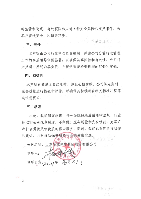 本聲明自簽署之日起生效,并且長期有效。公司將定期對服務(wù)質(zhì)量進(jìn)行檢查和評估,以確保其持續(xù)符合相關(guān)標(biāo)準(zhǔn)、規(guī)范或法規(guī)要求。