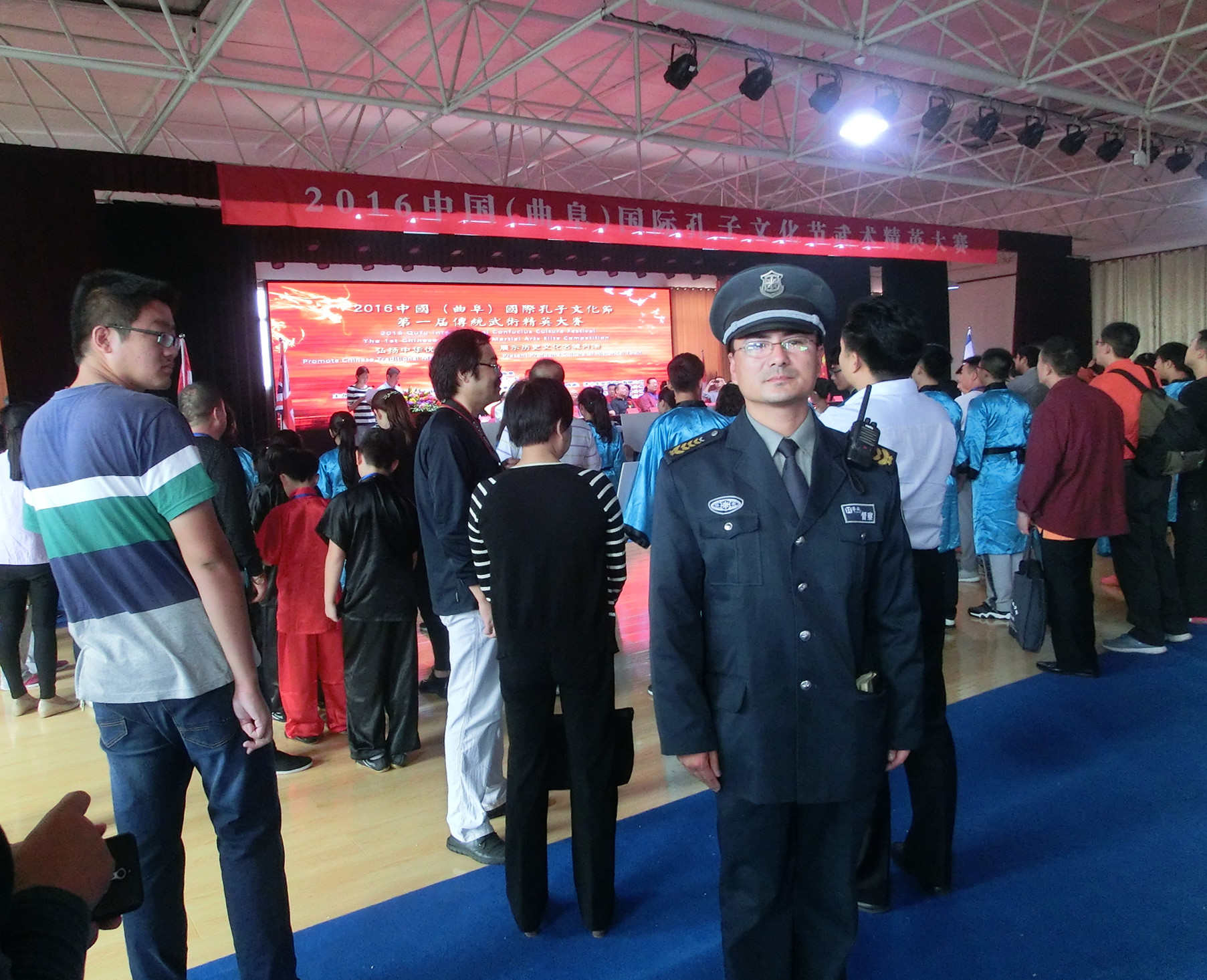2016年10月4—5日,犬業(yè)公司承擔了在曲阜孔子文化學院舉辦的“2016中國(曲阜)國際武術精英大賽”的安保任務。本次活動,公司高度注視,克服任務重,時間緊的困難,抽調隊員和管理骨干10人,對活動現場進行安保。活動期間,會場秩序井然,停車指揮疏導及時,確保了活動順利開展,得到了客戶的好評。