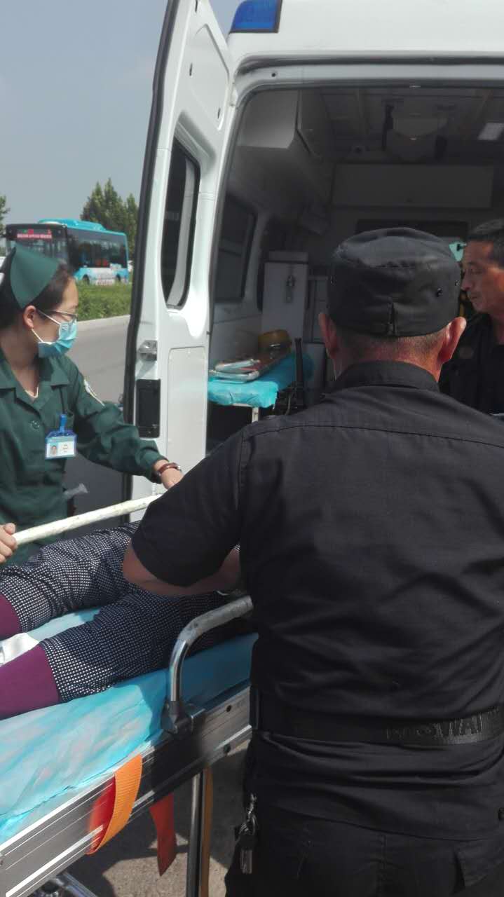 8月31日13時(shí)50分左右,德州東北商貿(mào)物流城招商中心西側(cè)路口發(fā)生車禍,一輛藍(lán)色面包車與一輛自行車相撞,自行車車主當(dāng)場(chǎng)昏迷,東北城項(xiàng)目部隊(duì)長姚愛民帶領(lǐng)隊(duì)員曲秀友、王偉巡邏發(fā)現(xiàn)后,迅速采取行動(dòng)保護(hù)現(xiàn)場(chǎng)并緊急撥打120求助,同時(shí)電話通知傷者家屬到達(dá)現(xiàn)場(chǎng)。救護(hù)車趕到后,又協(xié)助醫(yī)護(hù)人員把傷者抬上救護(hù)車。