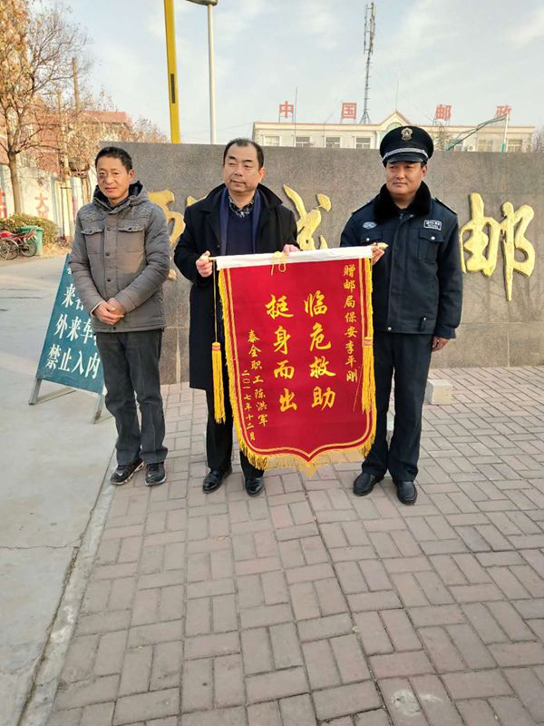 12月24號,鄄城郵局門前一輛電動轎車自燃,門衛(wèi)保安員孫發(fā)軍和李平剛發(fā)現(xiàn)火情后,立刻通知辦公室,并及時提著滅火器奮力救火,將車主的損失降到最低,事后車主為表示感謝特...