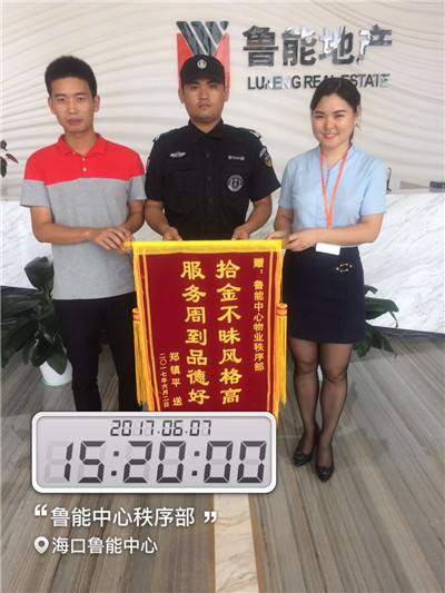6月2日晚20時,曲阜分公司駐海南魯能中心項目部保安員孔令壯,夜間巡邏時撿到現(xiàn)金若干,在附近未找到失主,便將錢交至秩序主管處,后通過監(jiān)控設(shè)備查找到失主鄭先生。鄭先生...