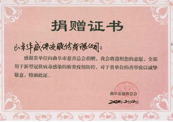 踐行社會責任、熱心公益事業是華威保安的傳統,組織員工開展抗擊疫情捐款活動,不僅是弘揚這一傳統美德的善舉,也是每位員工應盡的社會責任。雖然個人的力量是單薄的,但涓涓細流匯聚成海,山東華威保安集團用實際行動在春寒料峭時節為抗疫一線送去一股暖流。